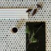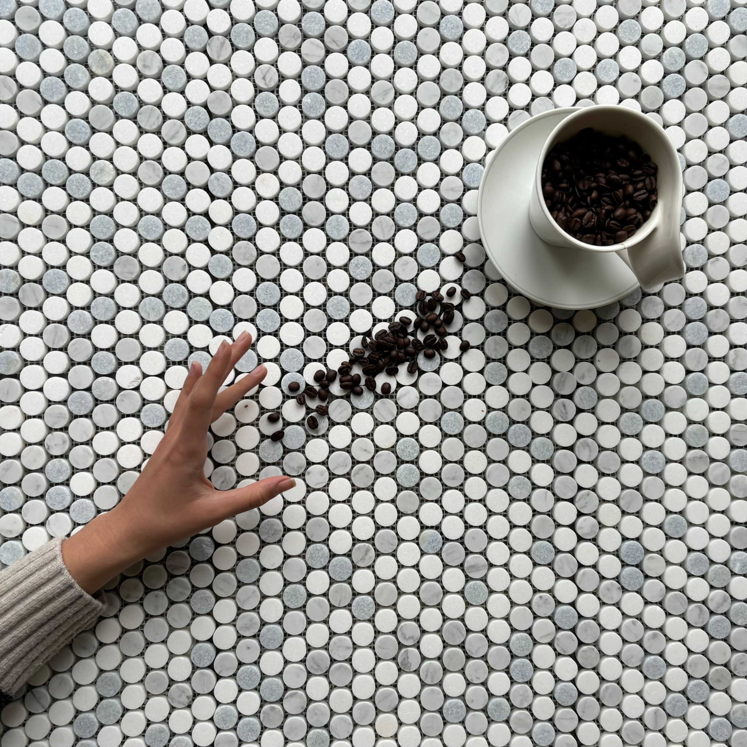 Mosaik aus blau-hellblauem und weißem Marmor (Penny Round)