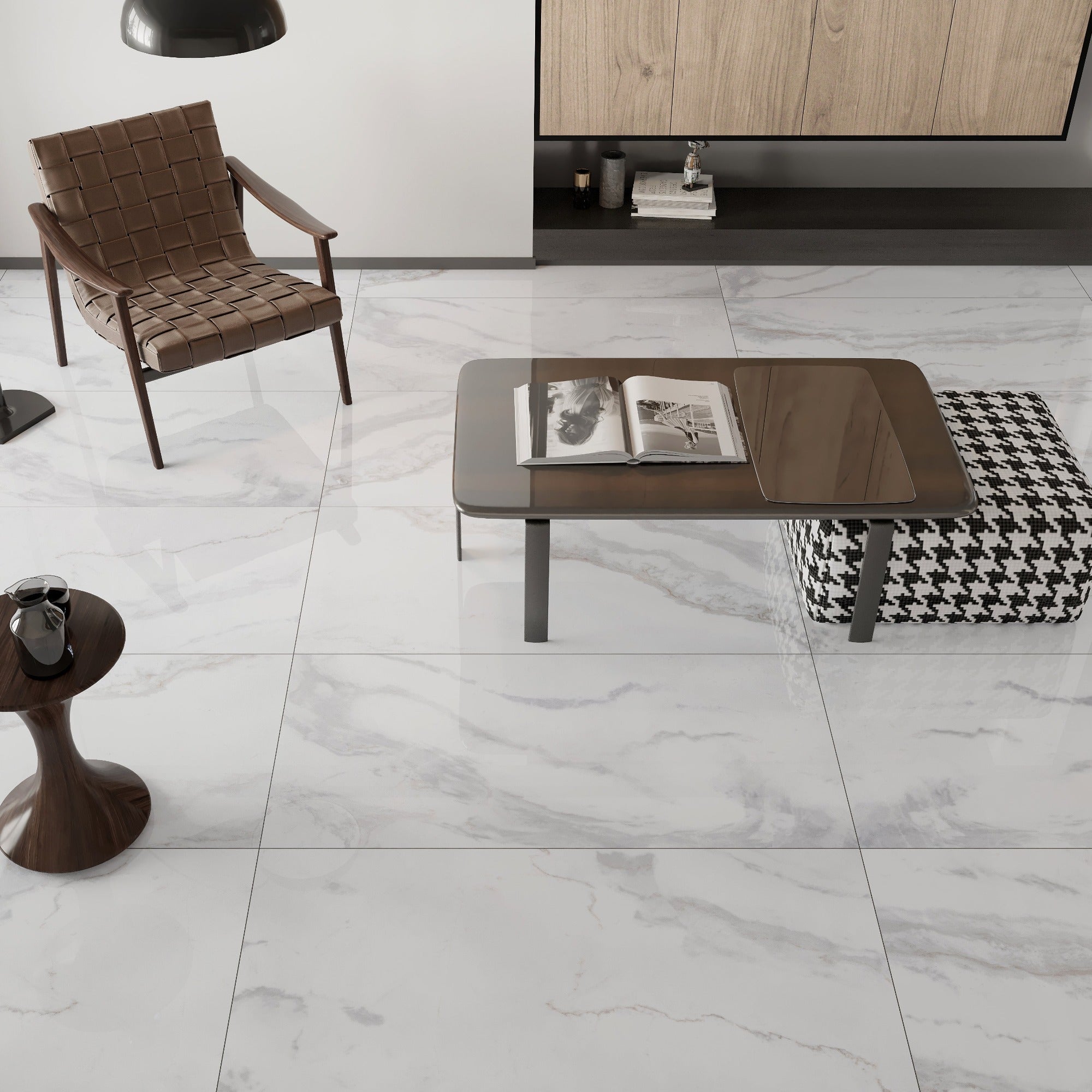 Suchen Sie eine elegante weiße Fliese mit wunderschöner grauer Maserung? Dann ist die Calacatta-Marmorfliese aus Drogheda genau das Richtige für Sie. Diese großformatige Fliese (61 x 122 cm) ist die perfekte Ergänzung für jedes Badezimmer oder jede Küche. Schaffen Sie ein großzügiges und luxuriöses Ambiente, das den Raum erhellt. Calacatta-Marmor ist ein sehr beliebter und geschätzter Marmor, der ein Leben lang hält. Seine Farbe ist zeitlos und verleiht jedem Raum ein wunderschönes Aussehen!